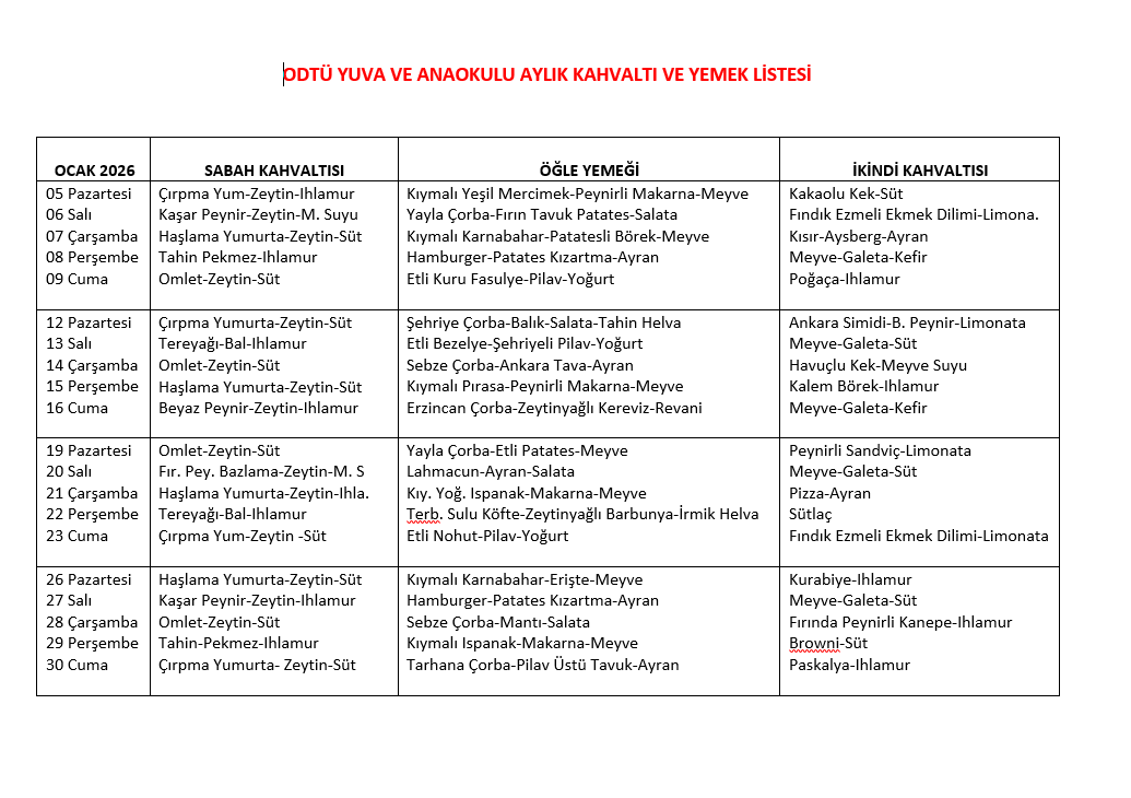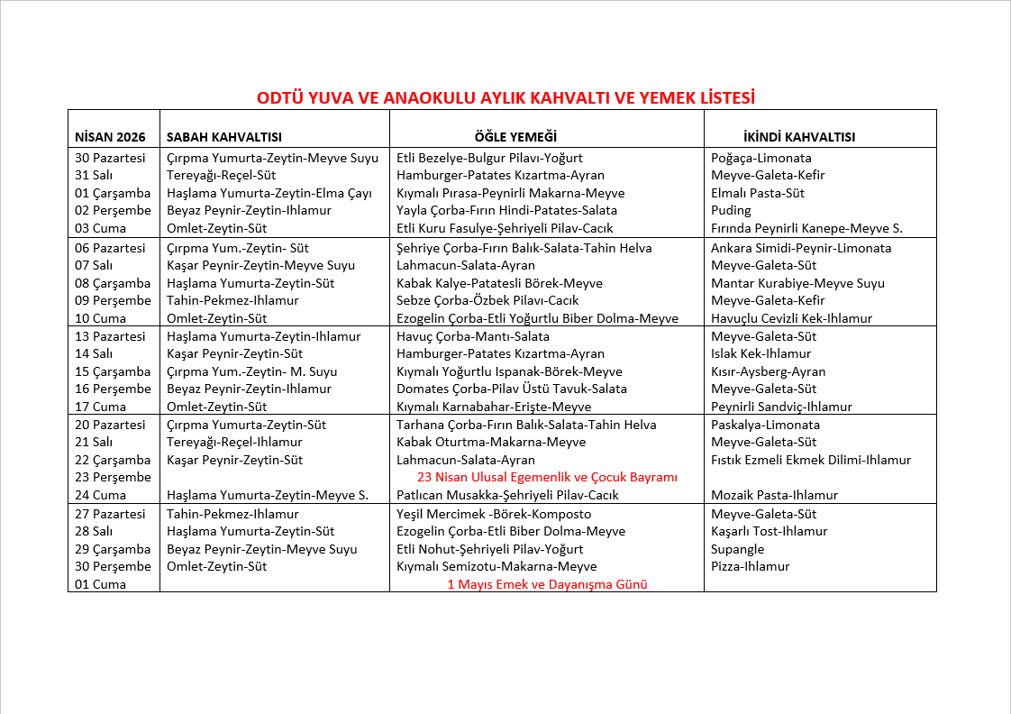 Aylık Yemek Listesi